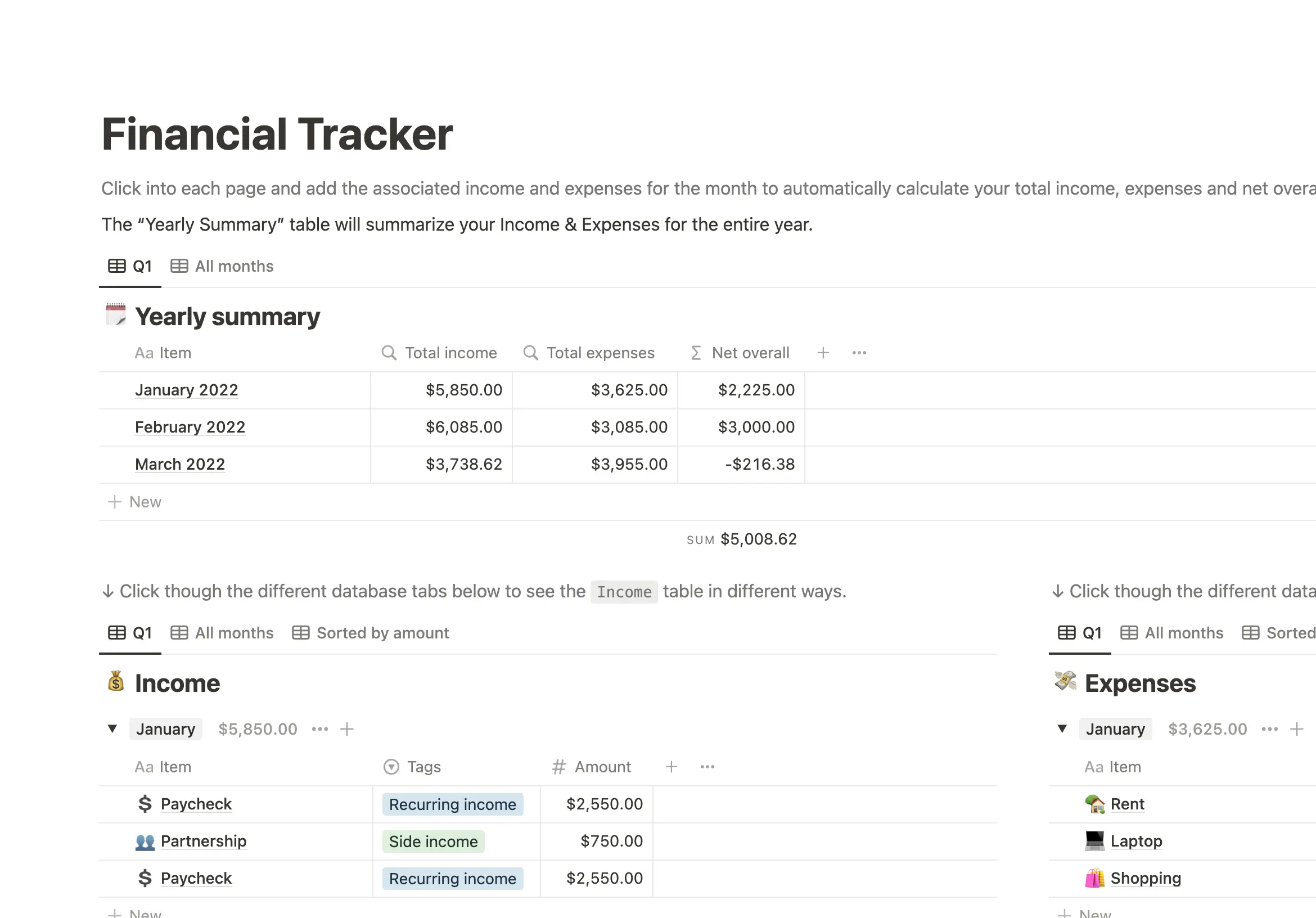 Financial tracking